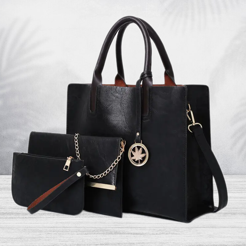 Retro Women Purse Set, a timeless trio designed to complement your style effortlessly. – 3-Pcs purse set includes a tote bag, chain crossbody bag, and wrist clutch bag – Crafted from high-quality PU material for durability and luxury – Solid color pattern for versatility and timeless style – Zipper closure ensures security for your belongings – Removable straps offer customizable carrying options – Polyester lining provides added protection – Perfect for various occasions, from casual outings to special events