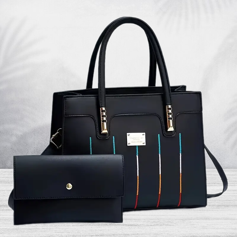 Elevate your accessory game with our exquisite Luxury 2-Piece Women’s Handbag Set, blending timeless elegance with contemporary flair. -Elegant two-piece women’s handbag set made of long lasting imitation leather. -Contains a chic crossbody bag and a multipurpose shoulder bag for maximum convenience. -The interior of your valuables is pleasant and protected thanks to the polyester lining. -Perfect for both casual and occasion wear, making a stylish statement wherever you go. -Simple solid color pattern adds a touch of sophistication, while striped pattern style offers a playful twist. -Random printing creates a unique and individualized look for each bag. -Zipper closures ensure secure storage of your essentials on the go. -End paint detailing adds a polished finish to the overall design.